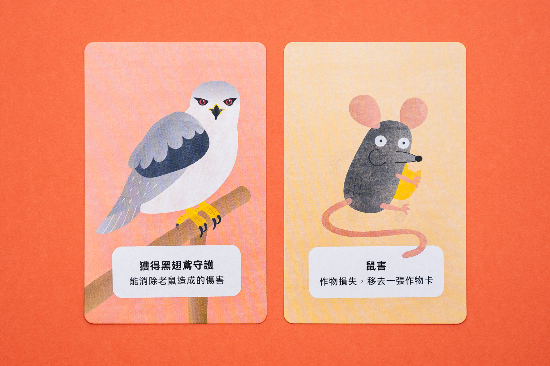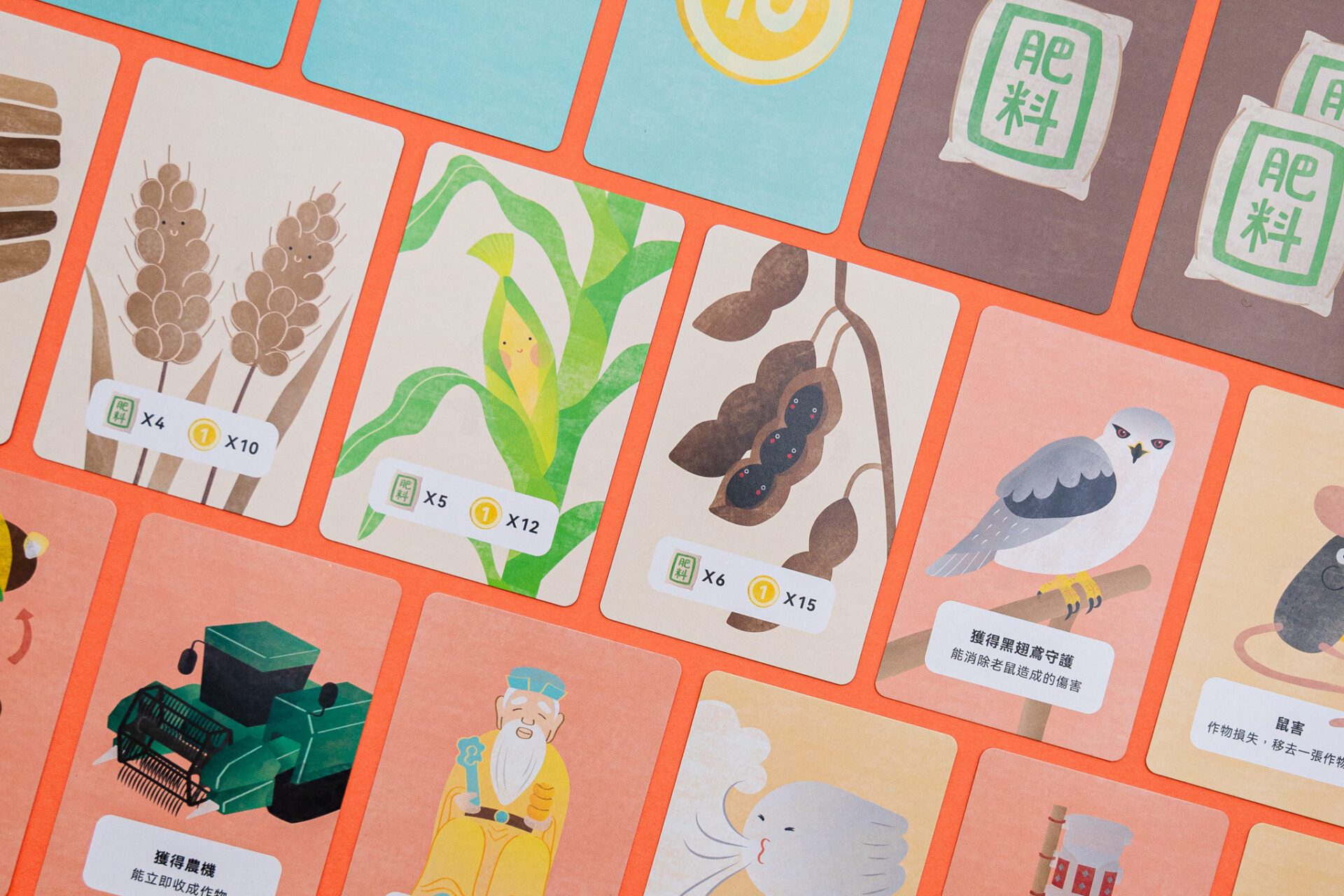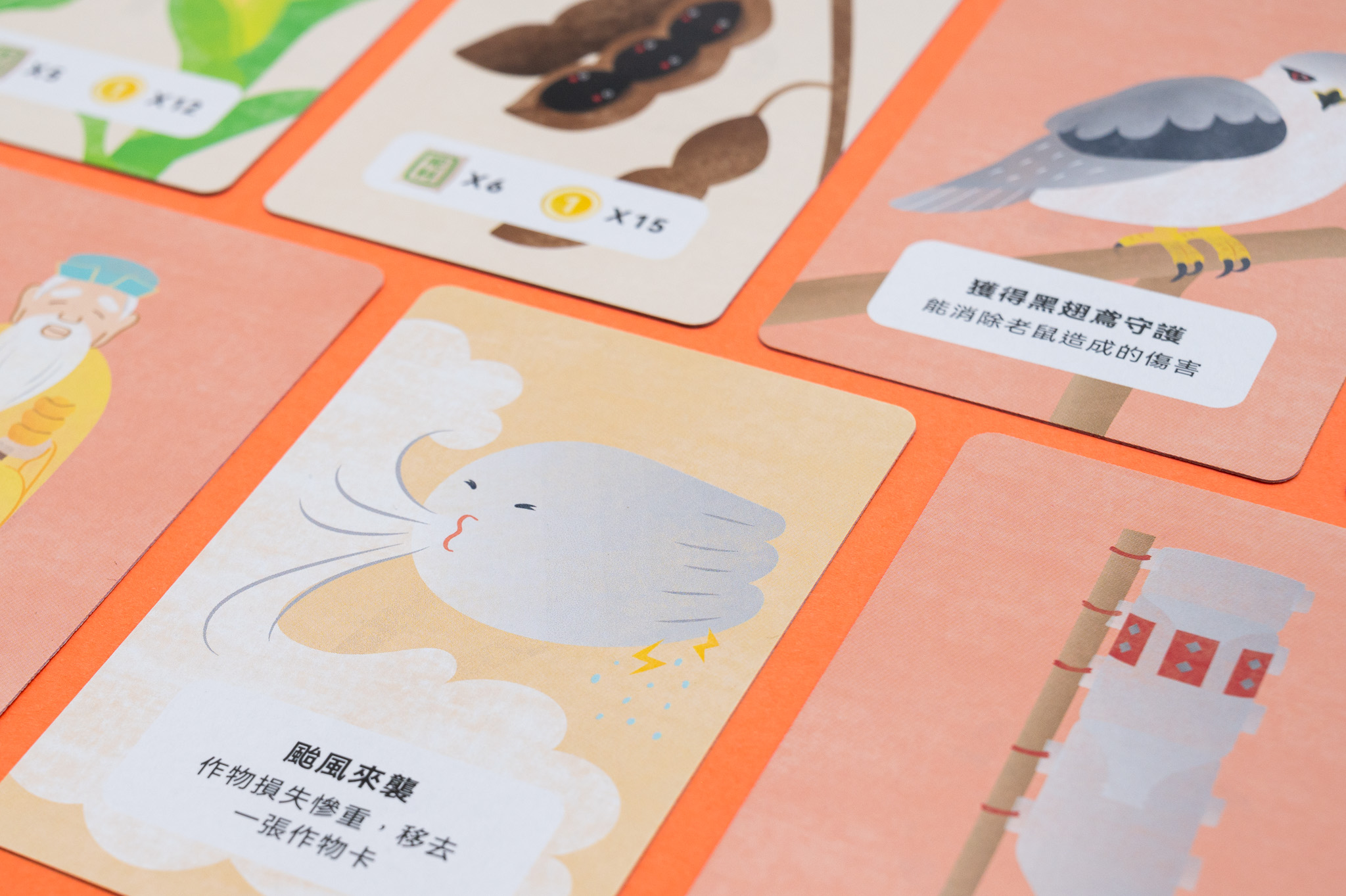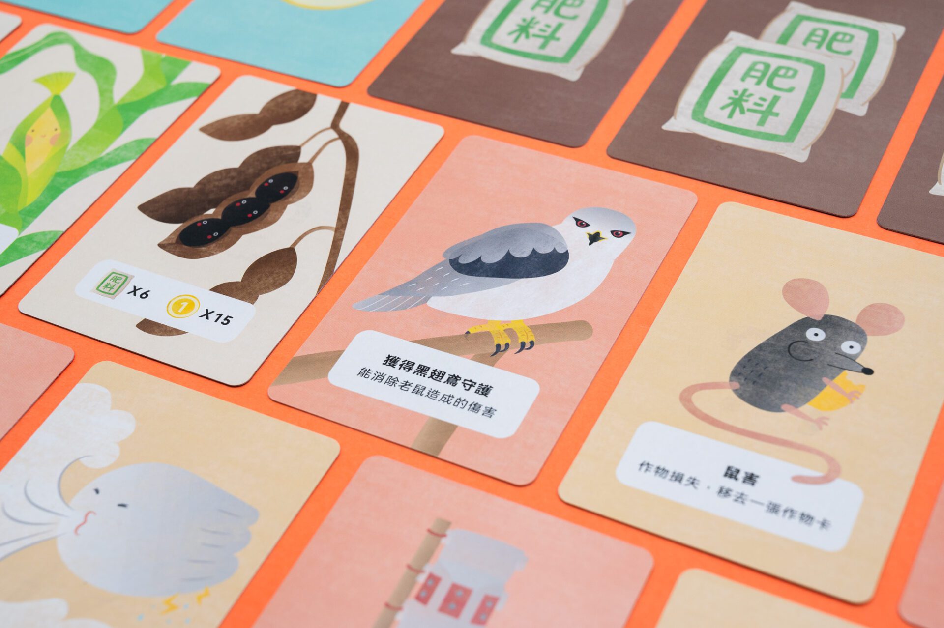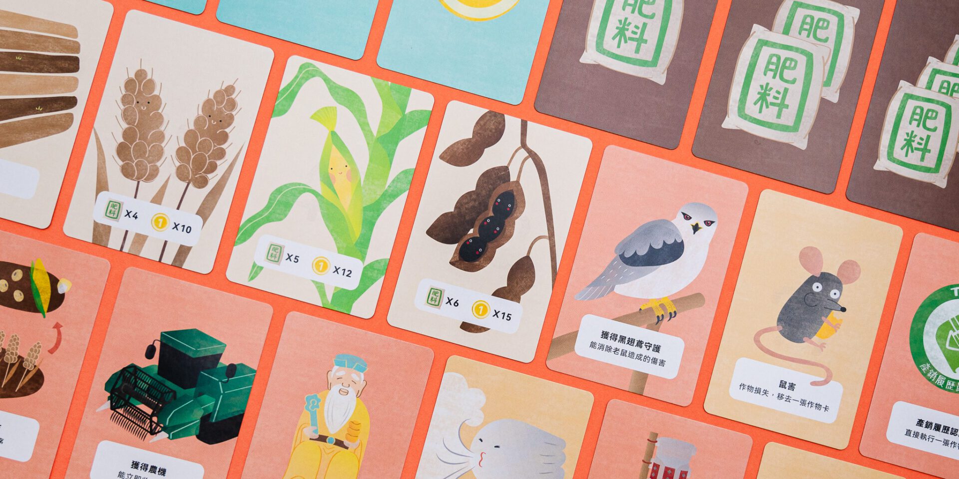 幸福農場 Client|幸福良食有限公司Game Design|張佳蕙Card Design|Yen幸福農場為一款模擬農夫生活的卡牌遊戲,玩家分配到農田,種植小麥、玉米、黑豆以換取金幣,並可以使用行動卡攻擊或阻擋其他玩家,例如颱風對應土地公、黑翅鳶對應鼠害、誘捕器對應蟲害等,呈現農人真實的生活樣貌和遭遇到的挑戰。 Previous Project Next Project