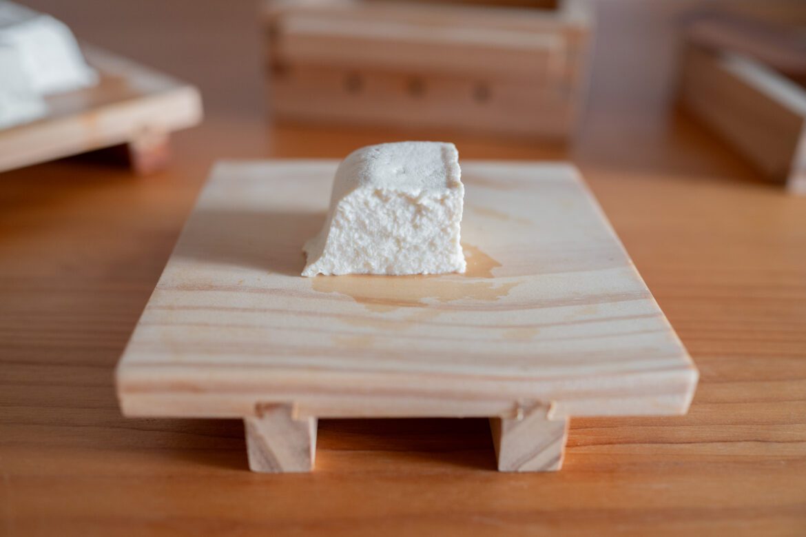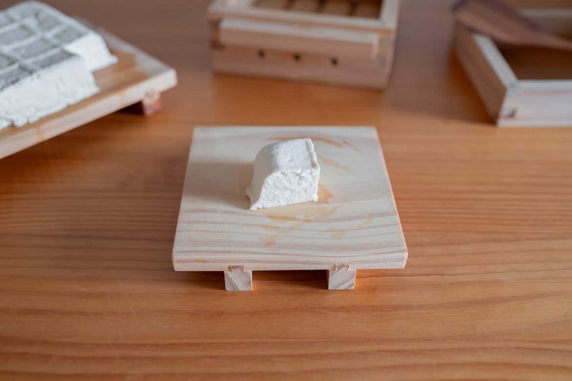 - 完成後的豆腐移出模具,小心移除豆腐布。豆腐完成。